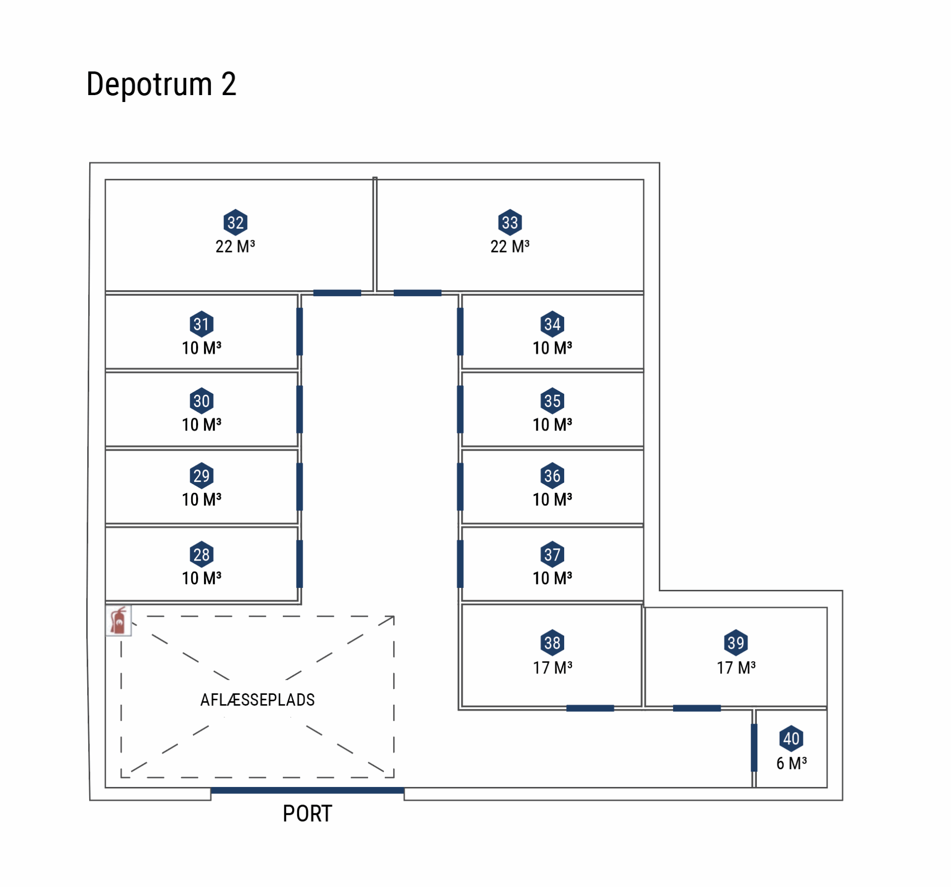 Nedenfor kan du se 40 depotrum i forskellige størrelser.